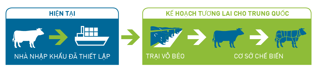 Năm 2015, chính phủ Úc và Trung Quốc đã thỏa thuận về quy trình sức khoẻ cho việc xuất khẩu gia súc từ Úc sang Trung Quốc để làm thức ăn và chế biến thực phẩm.
